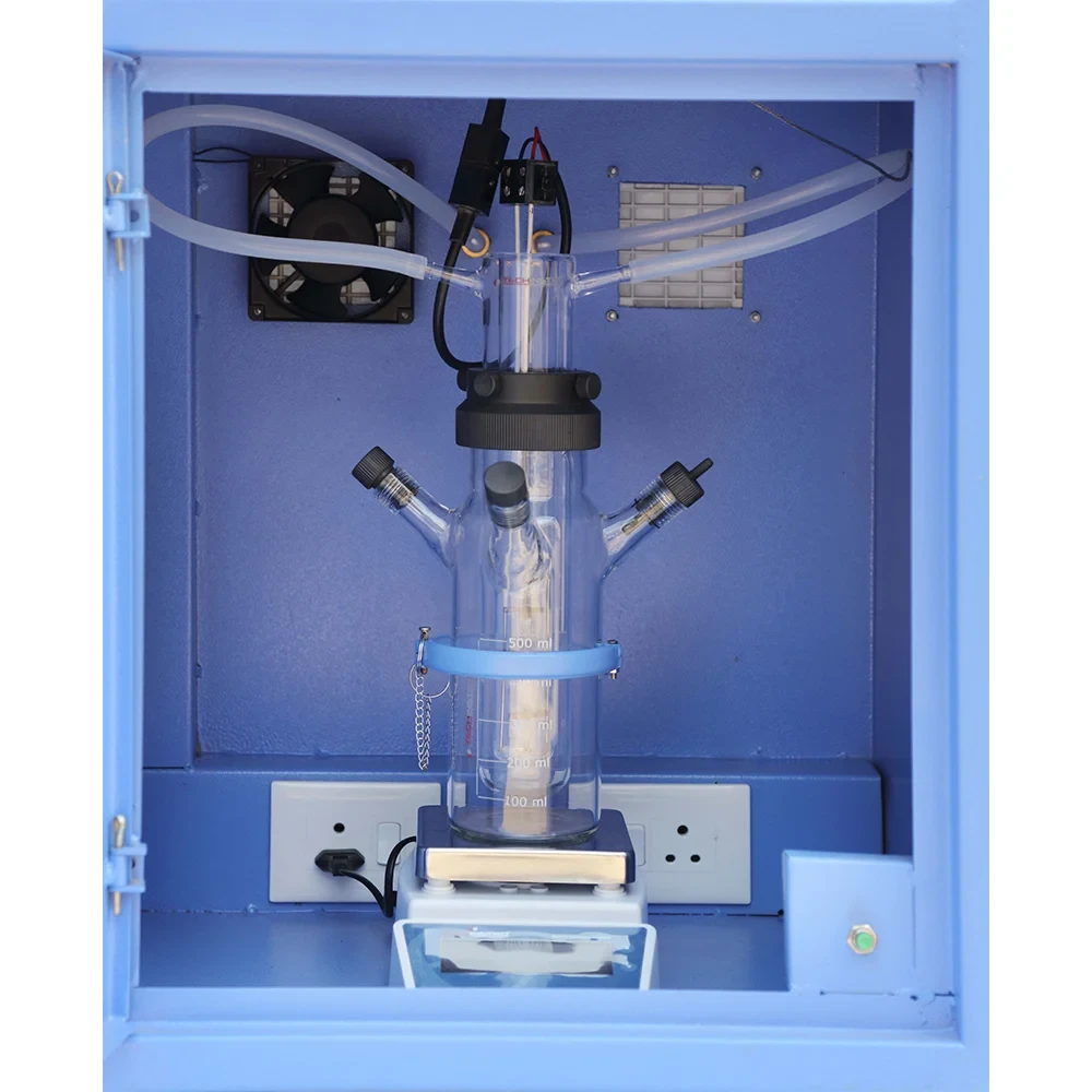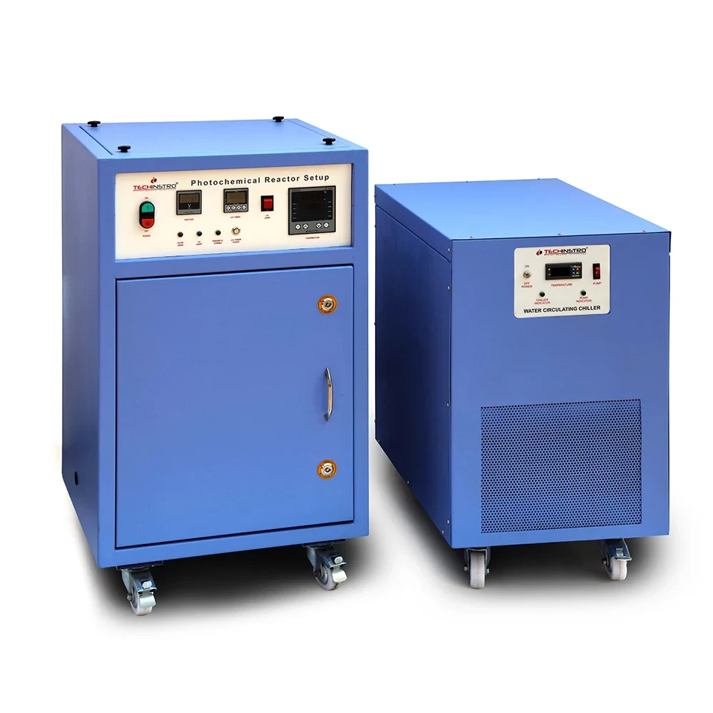 The photochemical reactor is used to carry out a photochemical reaction, water splitting, and photochlorination reaction. The reaction takes place in the presence of photon and catalyst. Hence it is called as photocatalysis reaction or photochemical reaction. The reactor is also known as the photocatalytic reactor. The photochemical reactors complete setup includes triple jacketed immersion well, medium and high-pressure mercury lamp, lamp power supply, a chiller for cold water circulation, safety cabinet and magnetic stirrer.